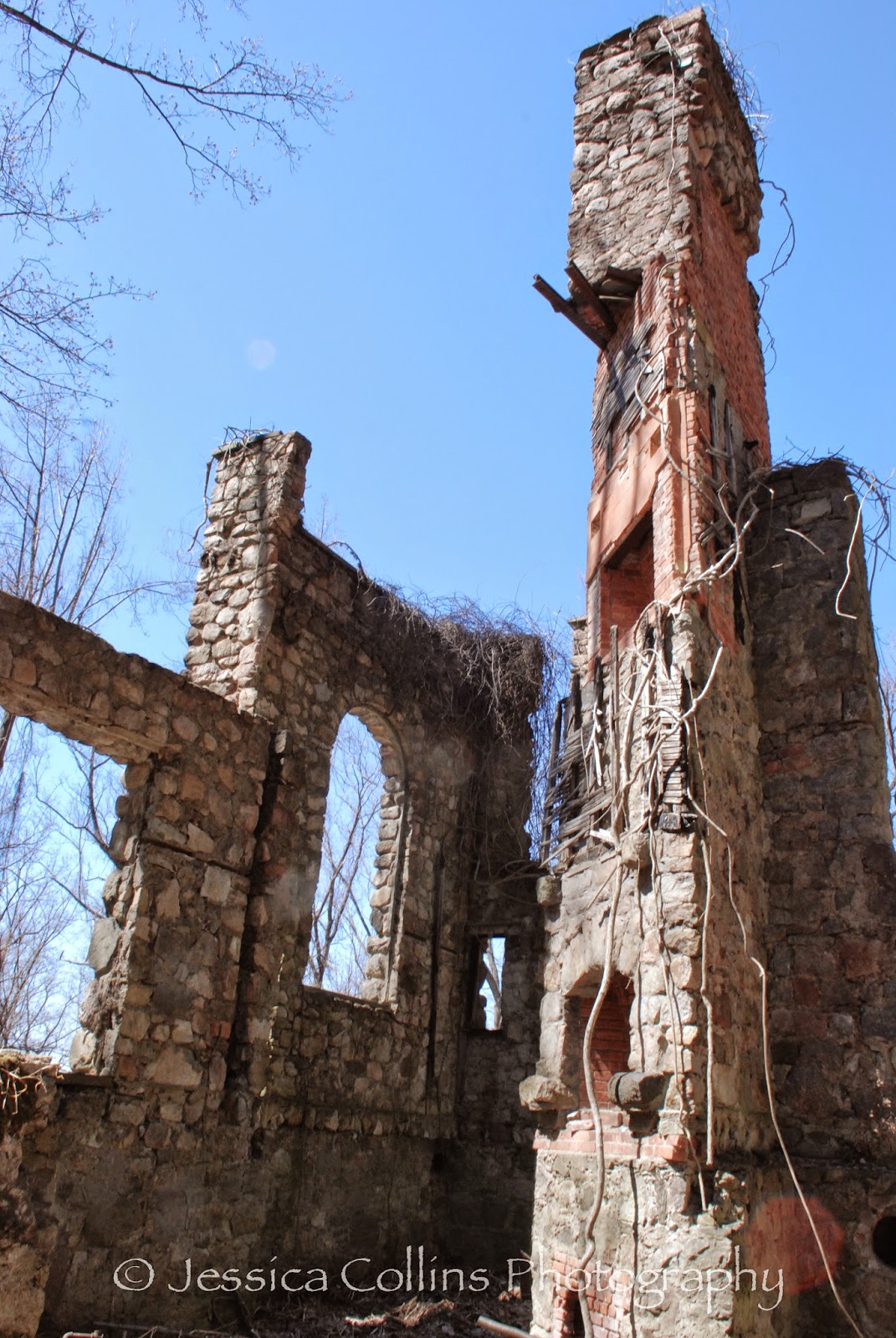 There is very little left of the interior, but we found a hanging staircase through one of the windows. I love the little peek we get of the inside through the few widows that aren't boarded up.